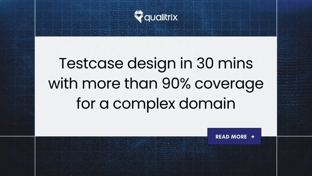 Testcase design in 30 minutes with more than 90 percent coverage for a complex domain Home Case Studies 5 Days of Work Compressed into 30 Minutes: High-Accuracy Test Design for India’s leading power trading platform Testing complex domains like energy and commodity markets requires more than just standard QA; it requires deep context. India’s leading power…